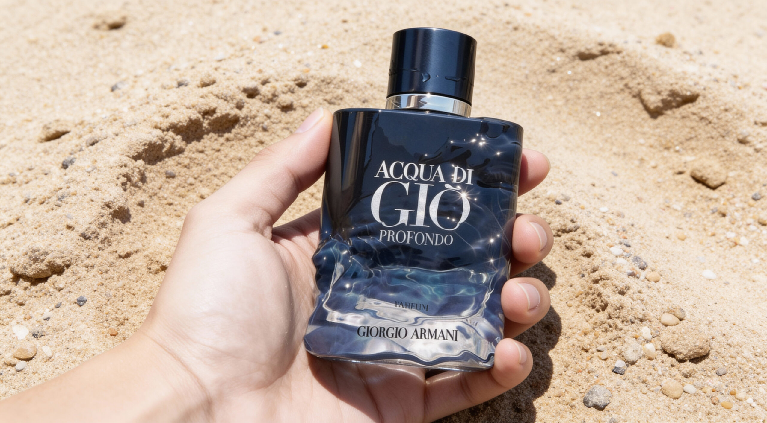 Master perfumer Alberto Morillas drew inspiration from the legacy of the iconic Acqua di Giò fragrance and intensified it. The bottle appears in deep blue tones that transition from transparent to dark depth, symbolizing the power of the ocean. The campaign portrays a man transformed by the strength of the sea. Giorgio Armani also links the fragrance to a philosophy of sustainability — through the Acqua for Life initiative, Armani helps provide access to clean drinking water in regions where it is scarce.