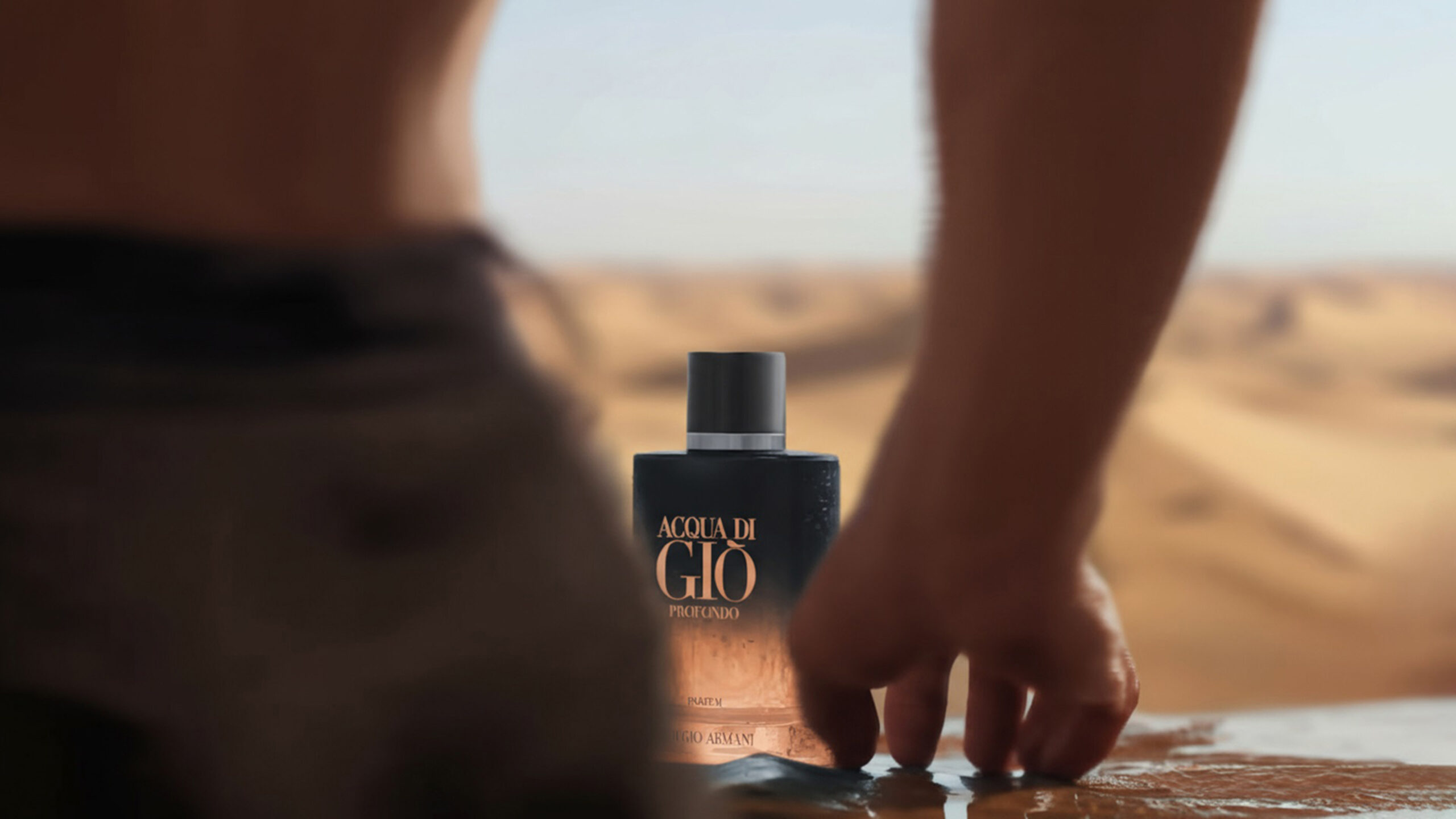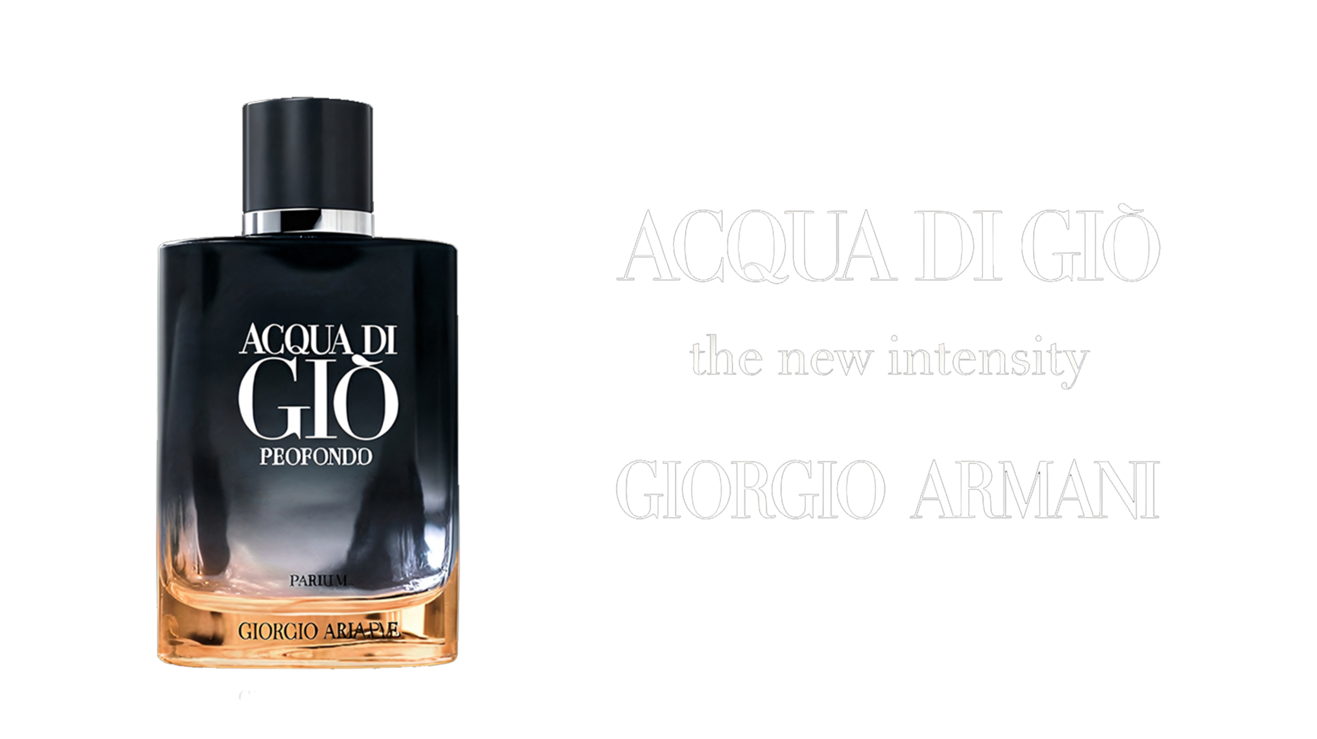 Master perfumer Alberto Morillas drew inspiration from the legacy of the iconic Acqua di Giò fragrance and intensified it. The bottle appears in deep blue tones that transition from transparent to dark depth, symbolizing the power of the ocean. The campaign portrays a man transformed by the strength of the sea. Giorgio Armani also links the fragrance to a philosophy of sustainability — through the Acqua for Life initiative, Armani helps provide access to clean drinking water in regions where it is scarce.